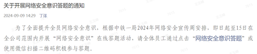 為增強(qiáng)中鐵一局全體員工網(wǎng)絡(luò)安全意識,提高網(wǎng)絡(luò)安全防護(hù)水平,按照股份公司安排部署,中鐵一局于9月9日至9月15日期間開展主題為“網(wǎng)絡(luò)安全為人民,網(wǎng)絡(luò)安全靠人民”的網(wǎng)絡(luò)安全宣傳周活動。