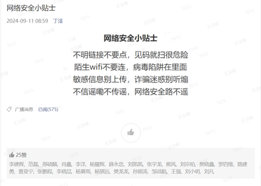 宣傳周期間活動形式多樣,內(nèi)容豐富,主要包括網(wǎng)絡(luò)安全周主題宣傳氛圍營造、網(wǎng)絡(luò)安全科普視頻推廣、每日網(wǎng)絡(luò)安全小貼士推送以及網(wǎng)絡(luò)安全知識競答活動。