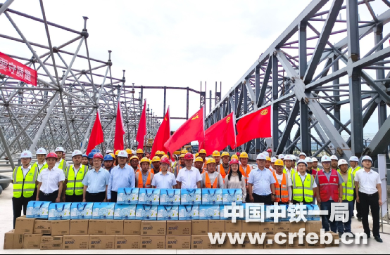 中鐵一局江北國際機場機務維修項目主要建設內容包括綜合樓、維修樓和機庫大廳等,總建筑面積約為31200平方米。其中,重點難點工程——維修機庫大廳1700噸鋼結構正處在網架提升的關鍵階段。此次慰問活動,不僅為一線建設者送去了夏日清涼,更為大家注入了攻堅克難的精神動力。
